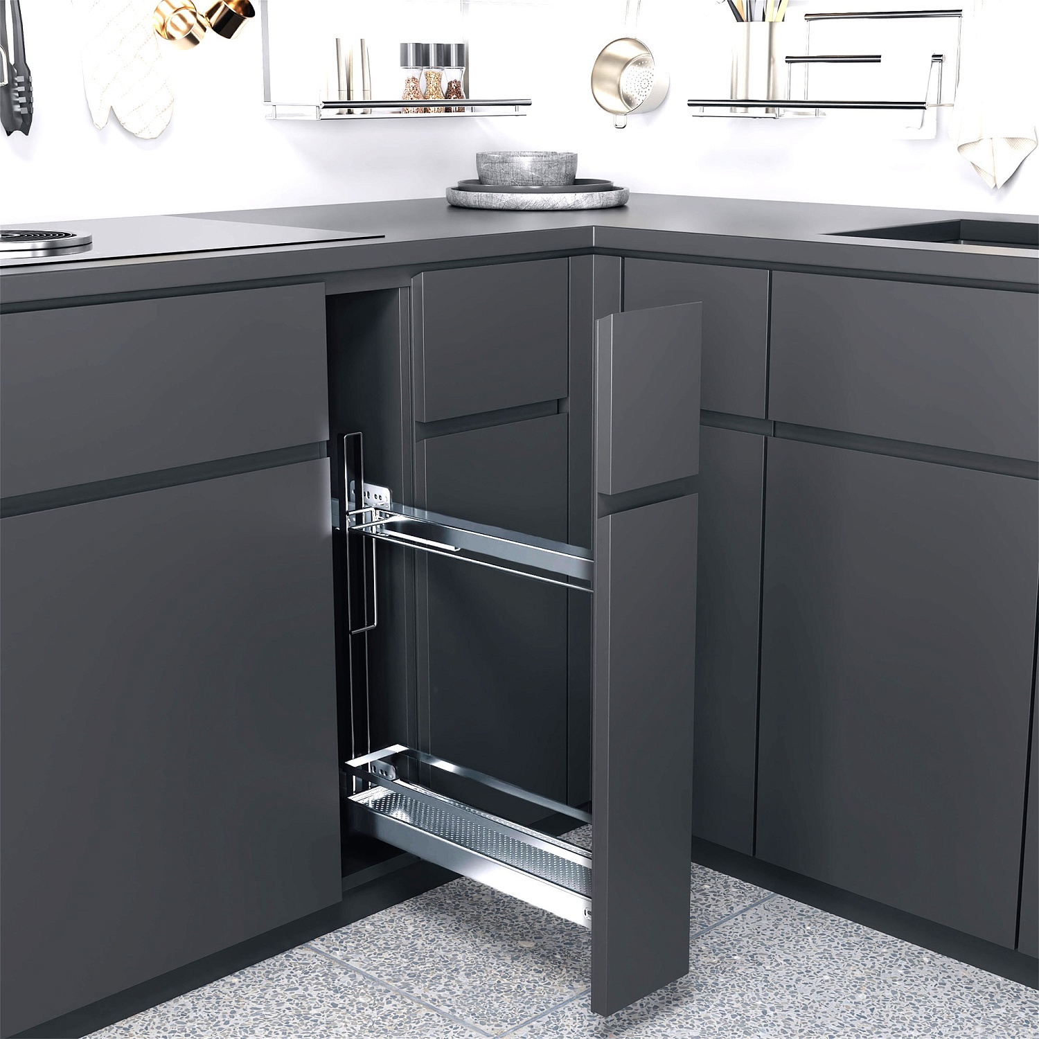 Бутылочница для противней №15 H 542 фасад 150 мм 3D