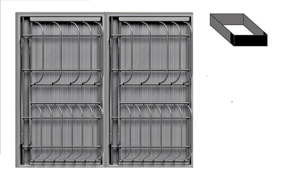 - 1 большой модуль для посуды + 1 большой модуль с решеткой + 1 малый модуль для посуды + модуль для столовых приборов
