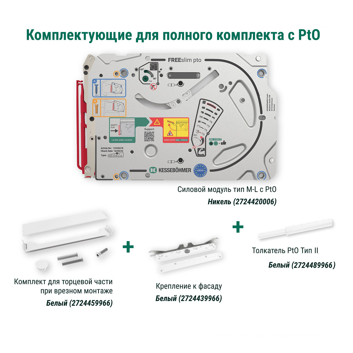 Полный комплект подъемного механизма ФриСлим ФЛАП c толкателем PTO тип II для врезного монтажа, цвет БЕЛЫЙ Kessebohmer | официальный магазин