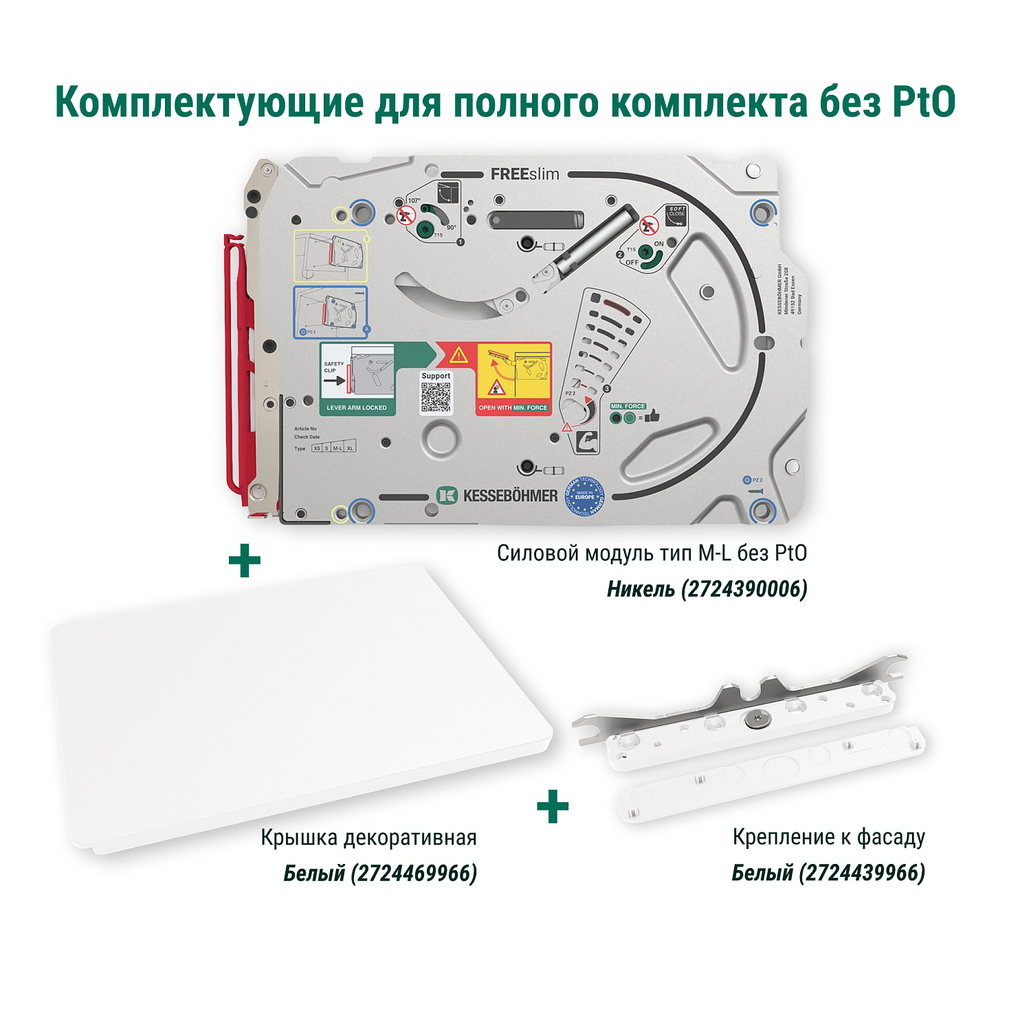 Полный комплект подъемного механизма ФриСлим ФЛАП с доводчиком для накладного монтажа, цвет БЕЛЫЙ Kessebohmer | официальный магазин