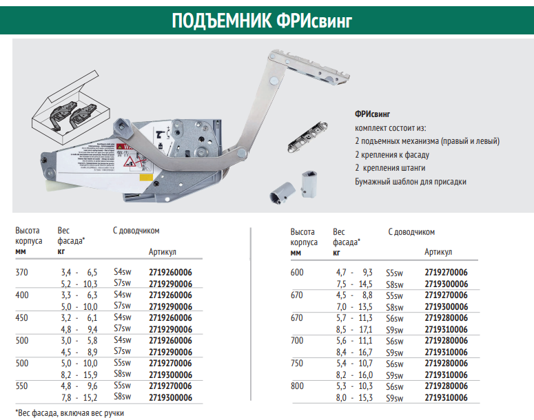 Подъемник ФриСвинг S4sw H370 - 500 мм 3,1-6,5 кг без крышек, без штанги