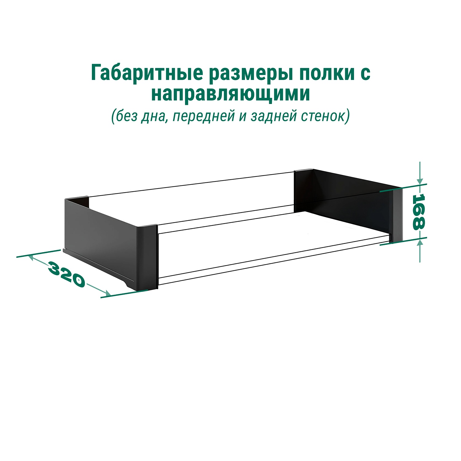 Полка внутренняя выдвижная 320 мм, Конеро, H 168, без дна, передней и задней стенок, 1 шт, цвет ЧЕРНЫЙ Kessebohmer | официальный магазин